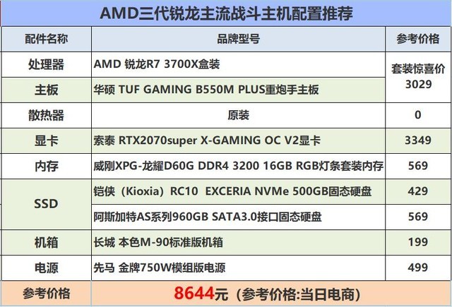 有朋友說想要組裝一臺能做后期,兼顧游戲的電腦主機(jī),可能有些時(shí)候還要兼顧能直接做直播。其實(shí)這些看似挺高的要求我認(rèn)為并不難做到對電腦配置要求不算非常高,但是也絕不是泛泛之輩能隨便搞定的,那么今天為大家分享一套AMD銳龍R7 3700X配RTX2070Super獨(dú)顯組裝的全能型主機(jī)配置。